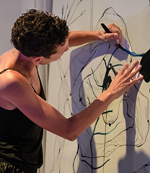 En tant qu’artiste, pourquoi créons nous ? L’acte de création selon Deleuze est un acte de résistance. Voilà notre point de départ. Sans prétention de pouvoir délivrer des réponses précises, nous tentons seulement d’être présents, debout et engagés dans nos mouvements incessants, dans nos corps, nos visages, nos voix et nos traits.
